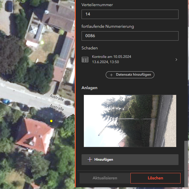 Anlagen sind Dateien, die Sie an ein Feature anhängen können, ähnlich wie bei einer E-Mail. Manche Themen unterstützen Anlagen und wenn diese editierbar sind, können mit dem Editor Anlagen hinzugefügt oder entfernt werden.